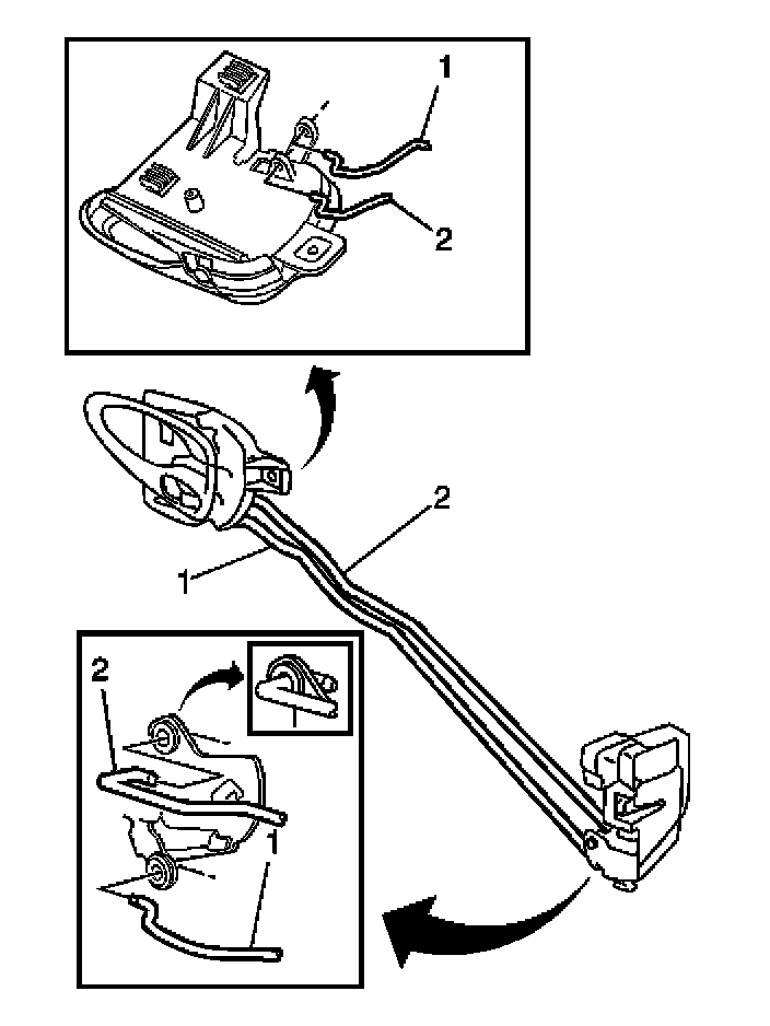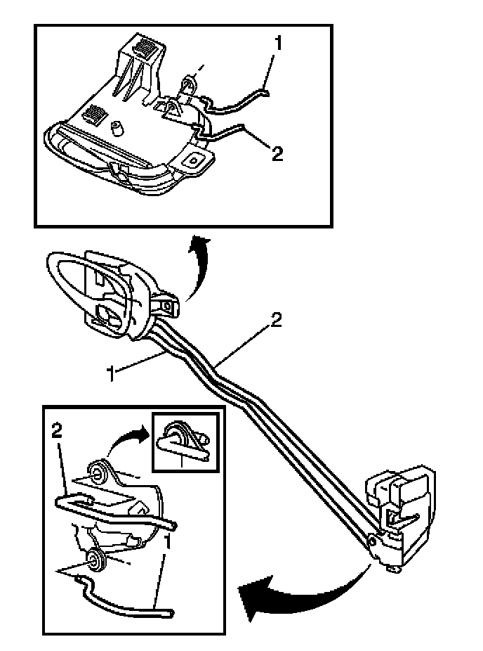 2. Pivot the outside edge of the door lock rearward and connect the inside handle rod (2).