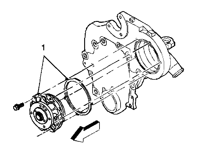 1. Install the water pump gasket and pump (1).
