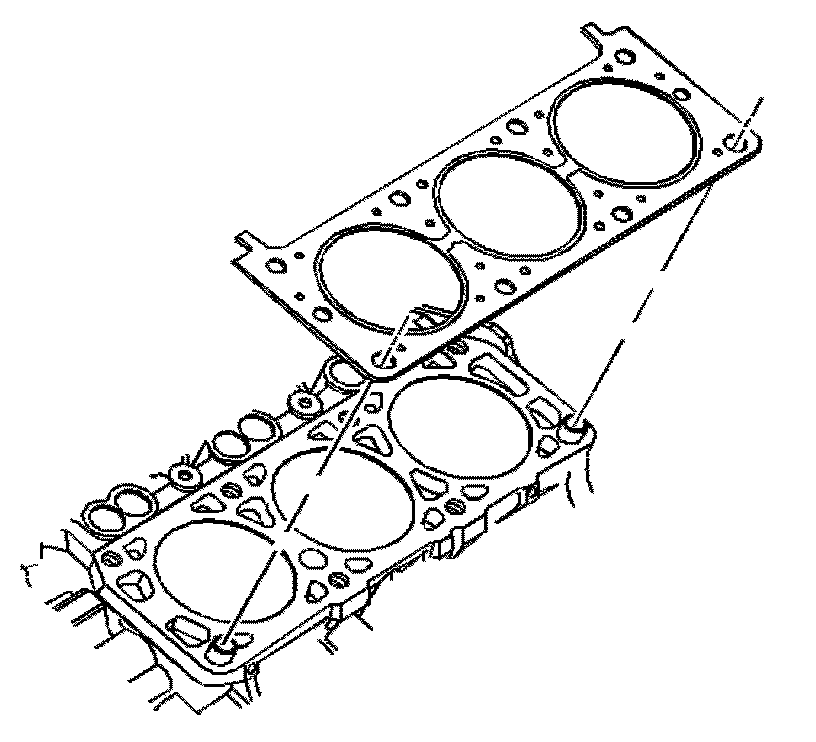 2. Place the cylinder head gasket into position over the dowel pins. Ensure that the THIS SIDE UP note is showing.