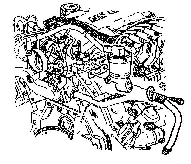 10. Remove the purge valve bracket bolt, hose and valve assembly.