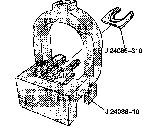 1. Install the fork insert J 24086-310 into fixture J 24086-10.