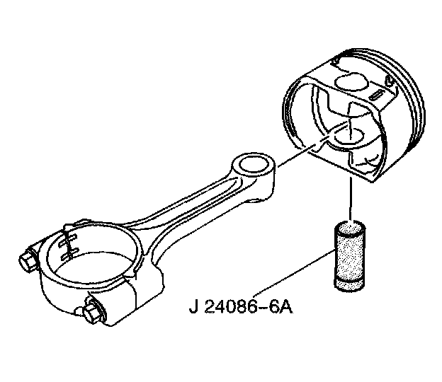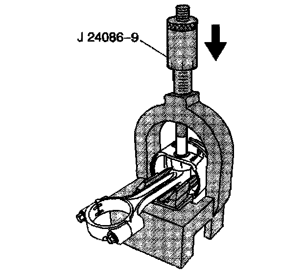 5. Insert pin J 24086-9 through fixture J 24086-10 and to the piston pin.