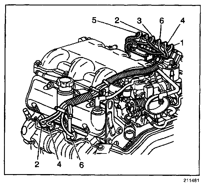 5. Install the spark plug wires 2, 4, and 6 to the engine left side spark plugs.