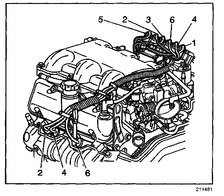 2. Remove the spark plug wires 2, 4, and 6 from the engine left side spark plugs.