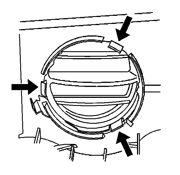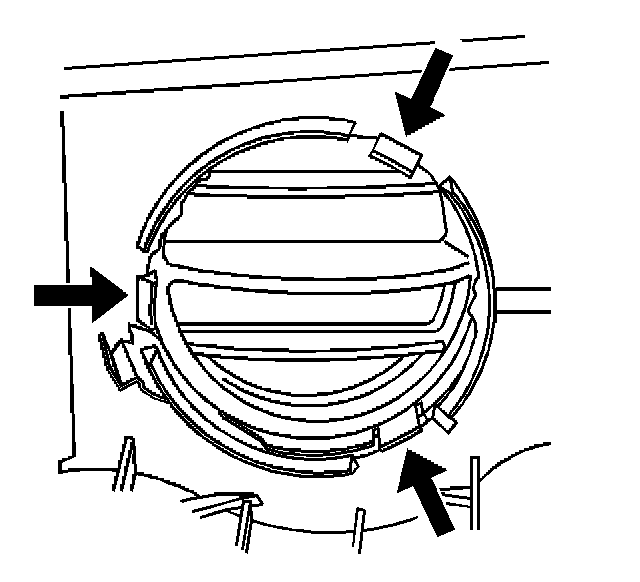 1. With a suitable tool release the retaining tabs through the vanes of the HVAC air outlet deflector.