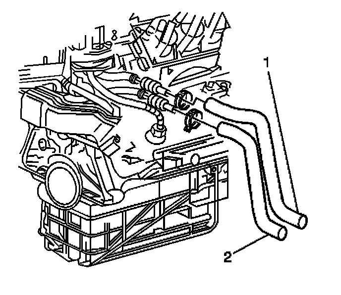 3. Disconnect the outlet heater hose (2) from the quick-connect fitting.