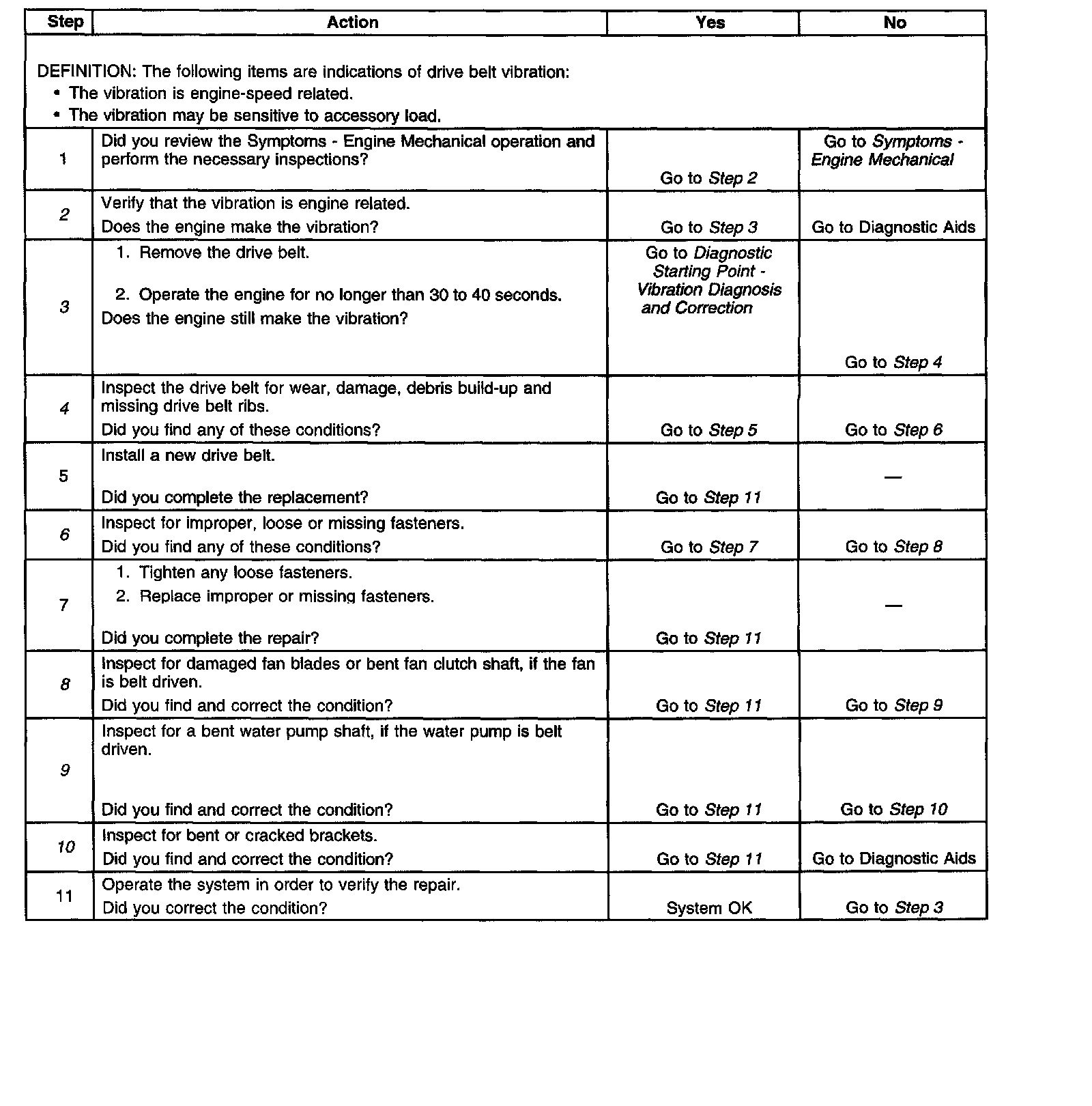 Drive Belt Vibration DiagnosisSteps 1-11: