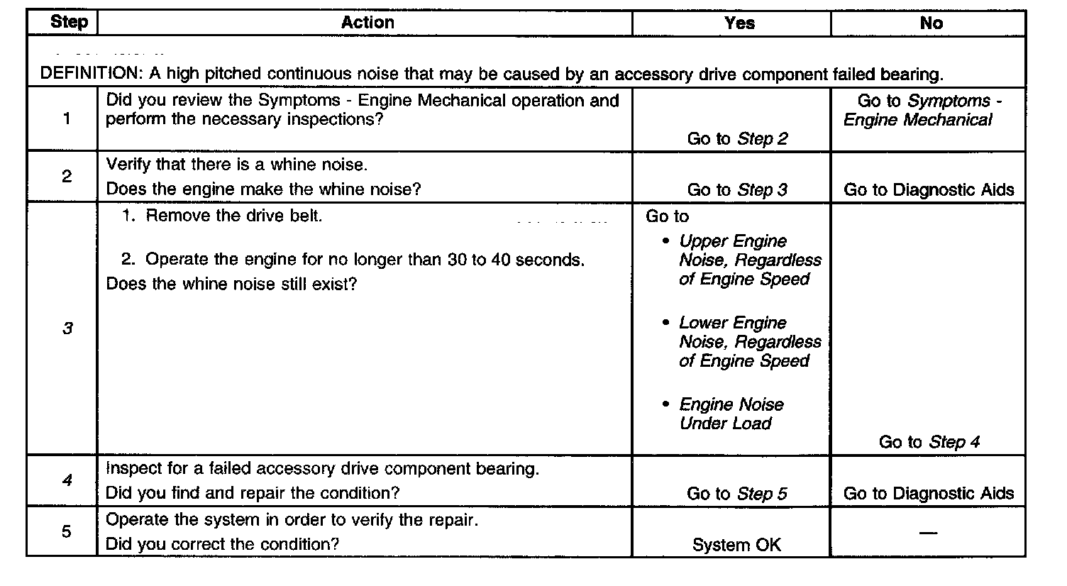 Drive Belt Whine DiagnosisSteps 1-5: