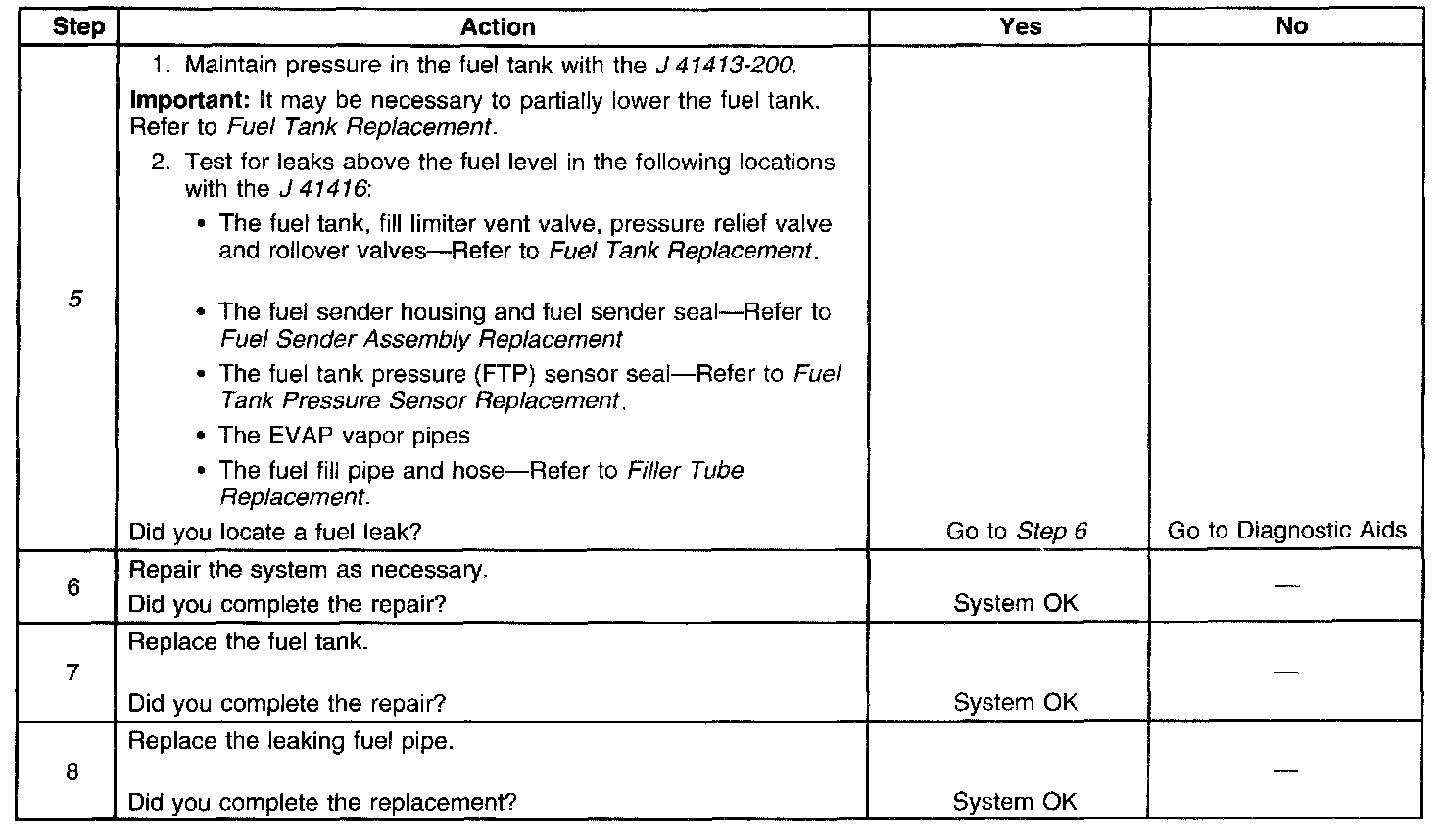 5. This test is to locate fuel vapors escaping above the fuel level in the fuel tank.