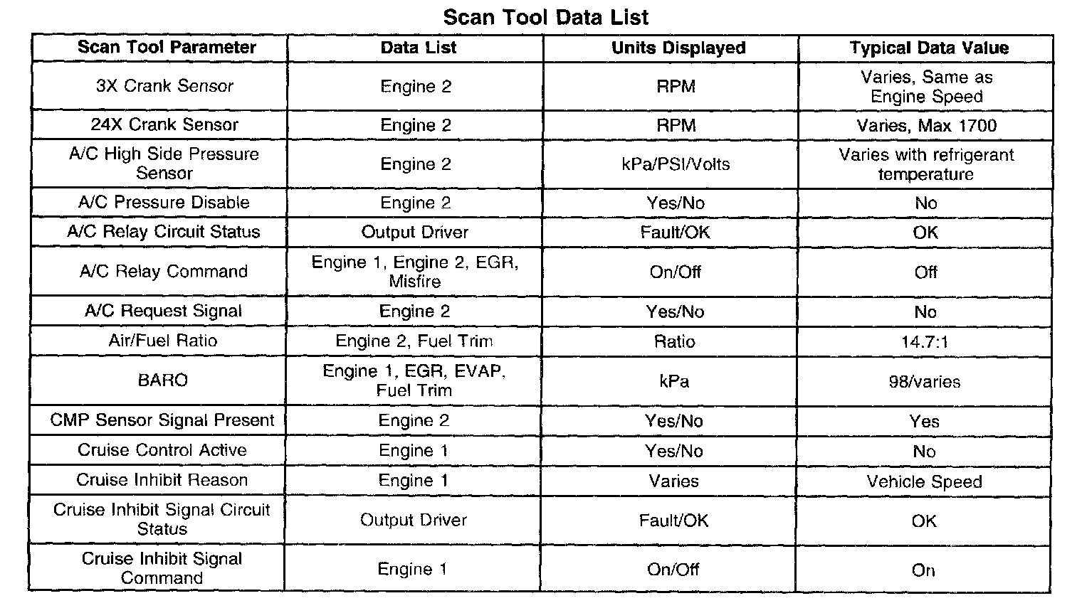 For scan tool parameter definitions, refer to Scan Tool Data Definitions. Scan Tool Data, Normal Values and Definitions