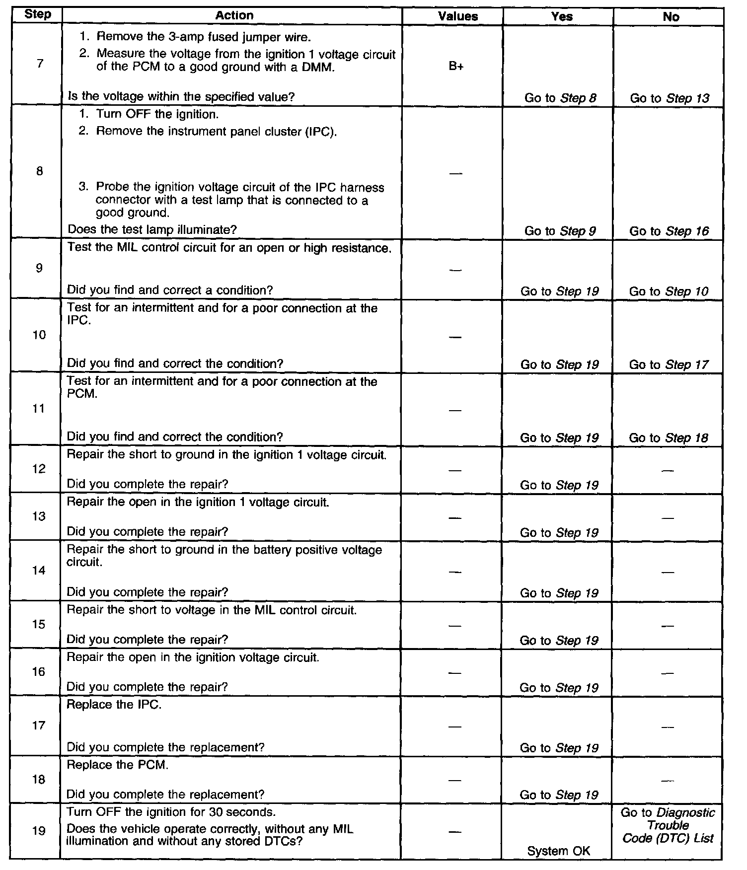 5. This step tests for a short to voltage on the MIL control circuit. With the fuse removed there should be no voltage on the MIL control circuit.
