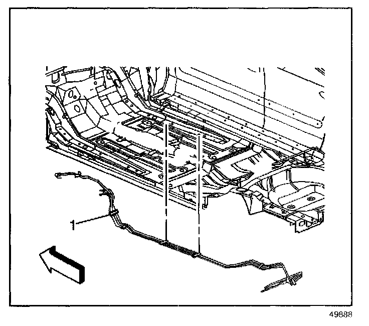 9. Remove the chassis purge pipe (1) to be serviced.