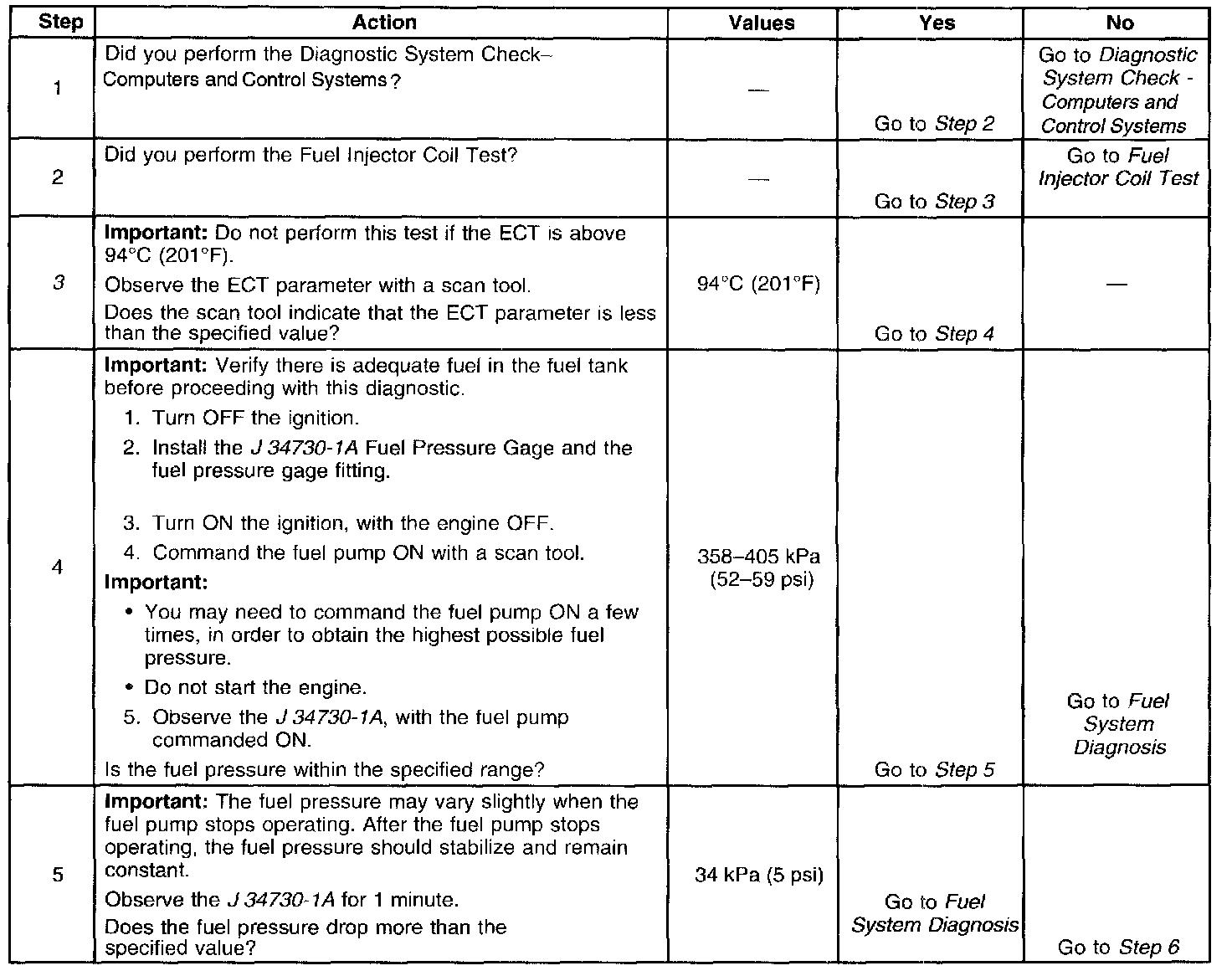 3. The engine coolant temperature (ECT) must be below the operating temperature in order to avoid irregular fuel pressure readings due to hot soak fuel boiling.