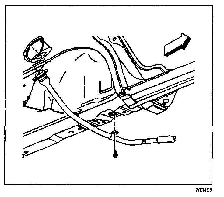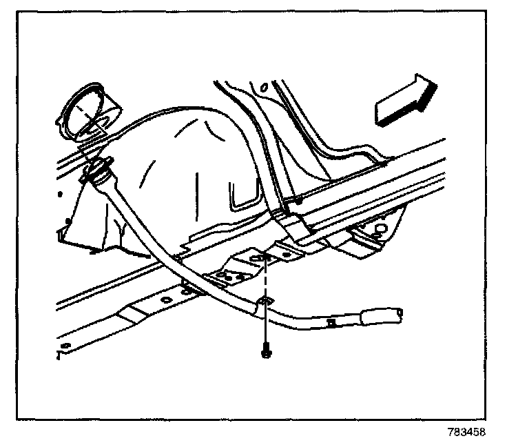 7. Remove the fuel filler pipe attaching screw from the under body.