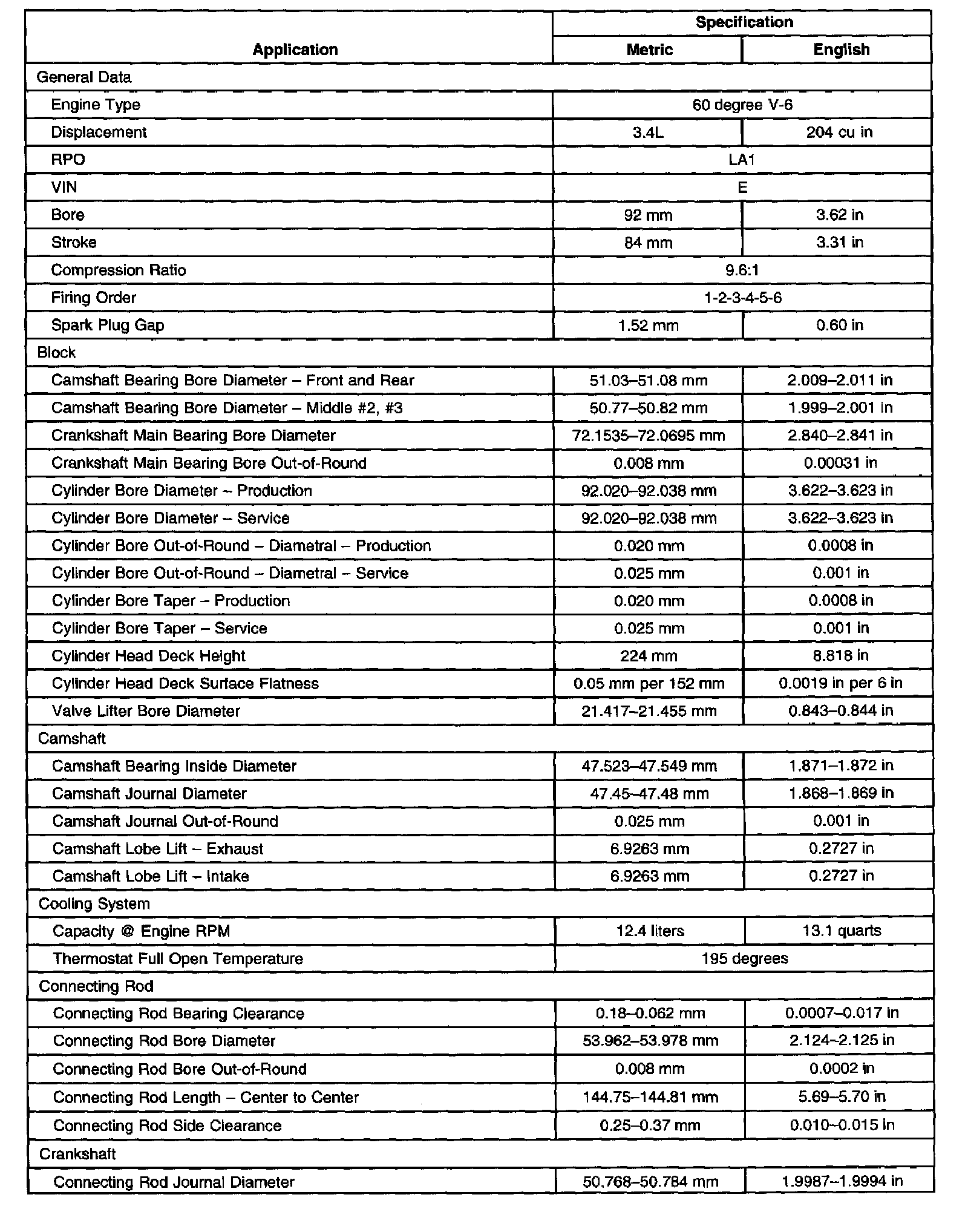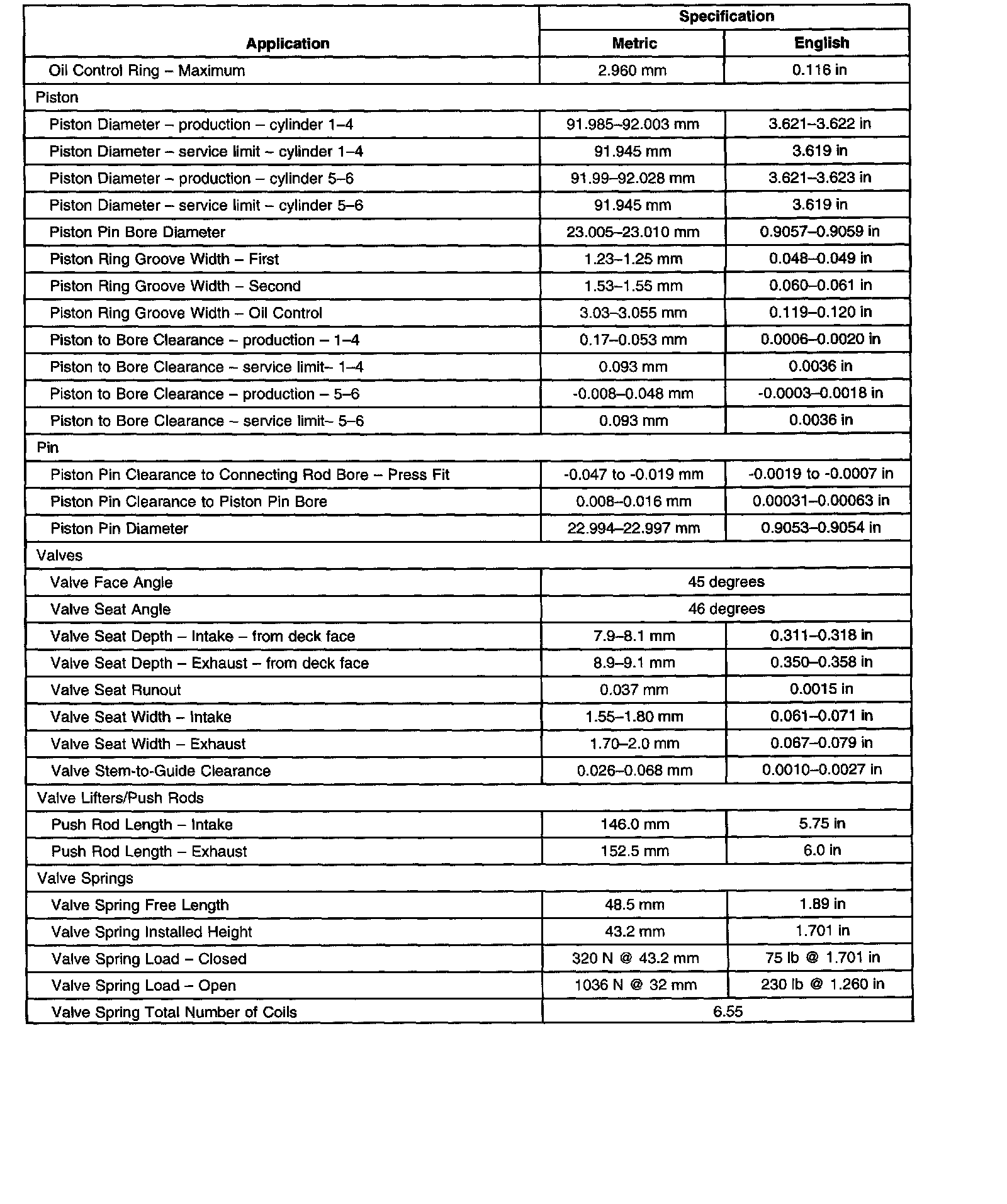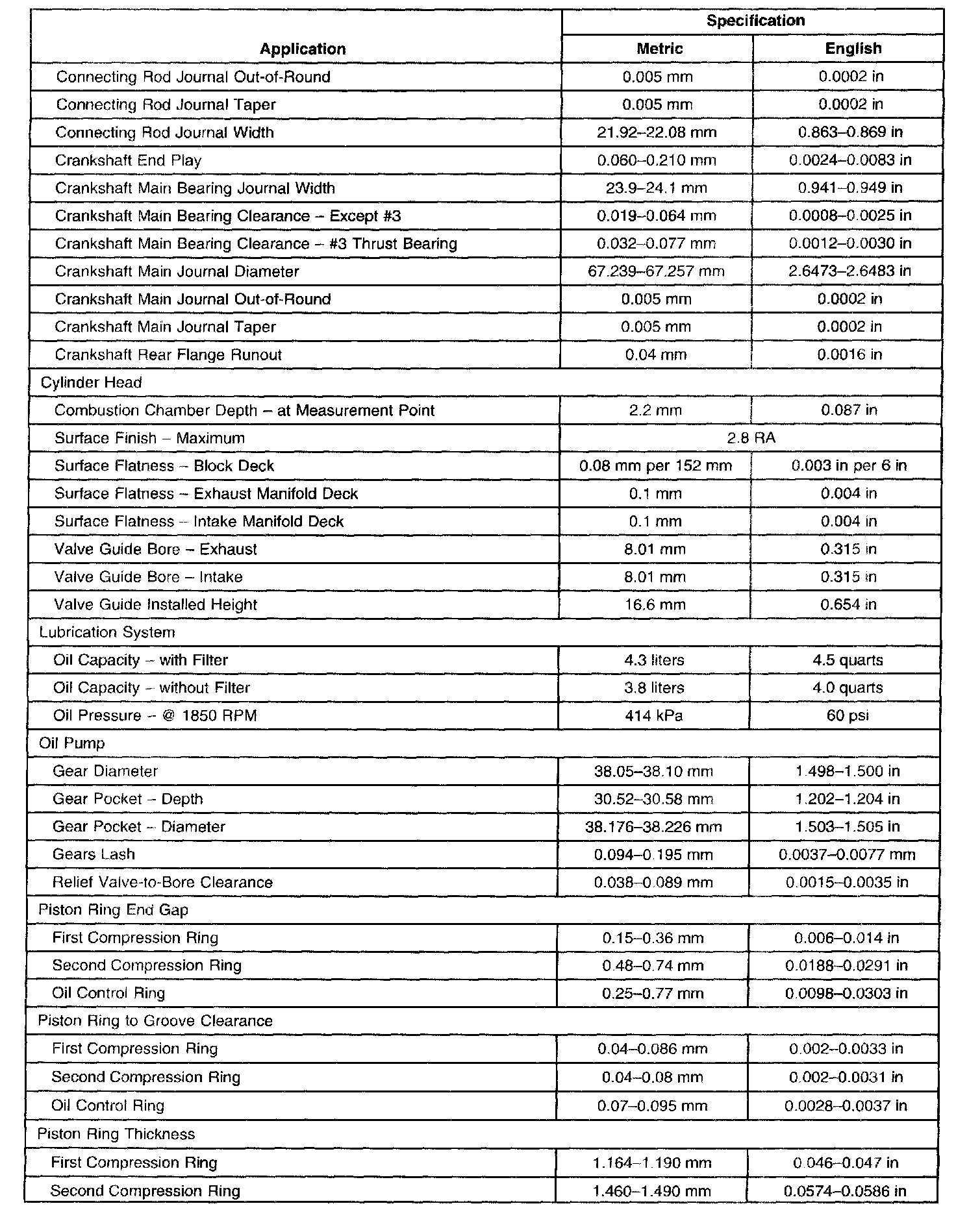 Engine Mechanical Specifications