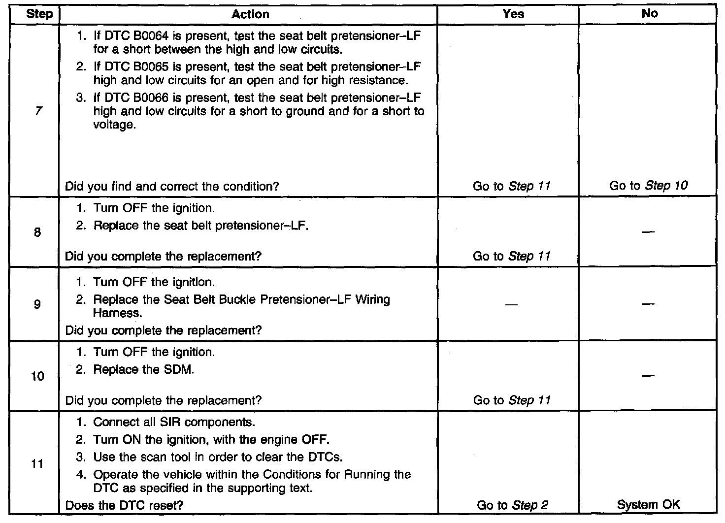 - DTC B0064 will set when the seat belt pretensioner-LF deployment loop resistance is less than 1.3 ohms for 500 milliseconds.