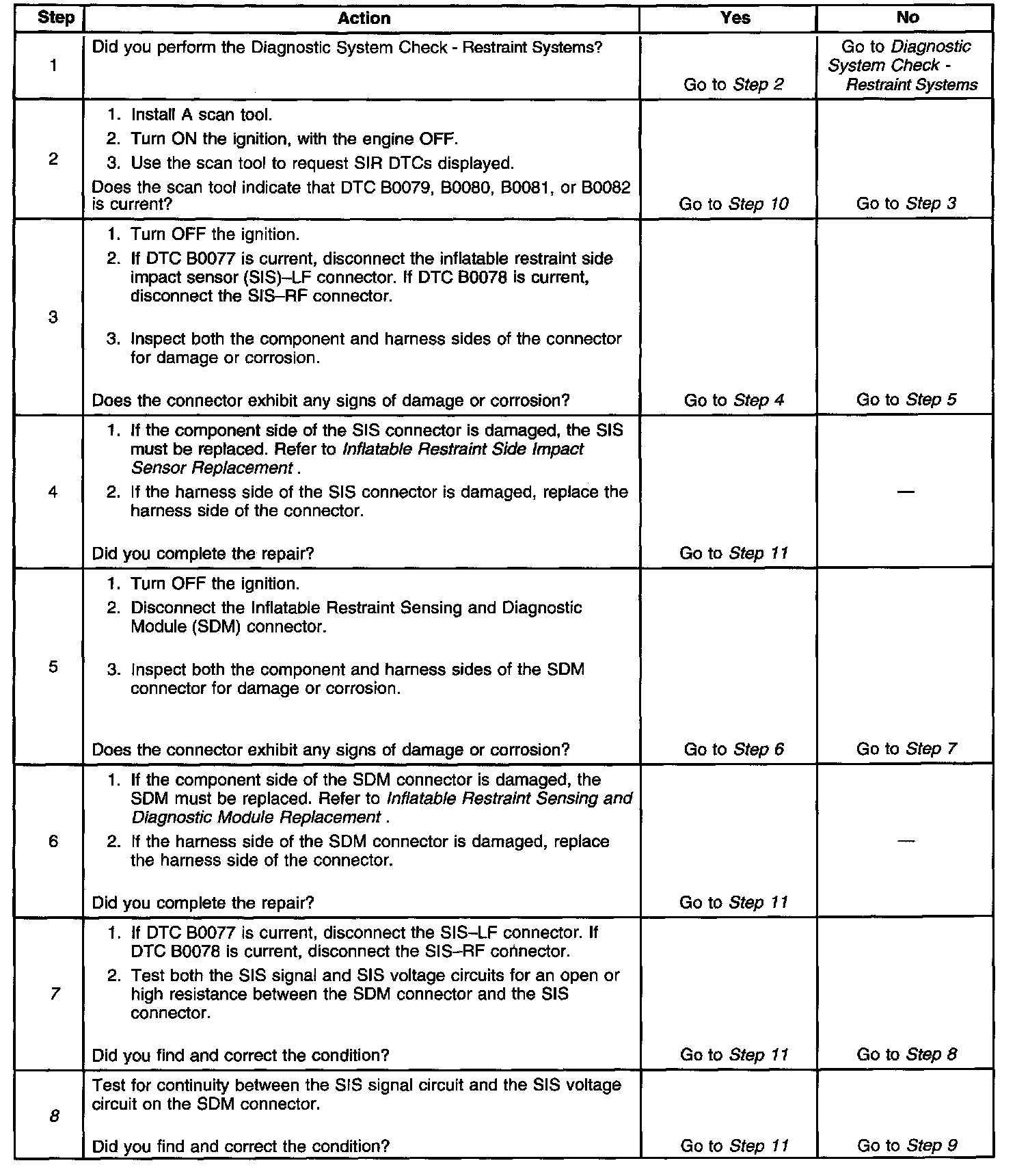 8. This step tests between the SIS signal and SIS voltage circuits for continuity.