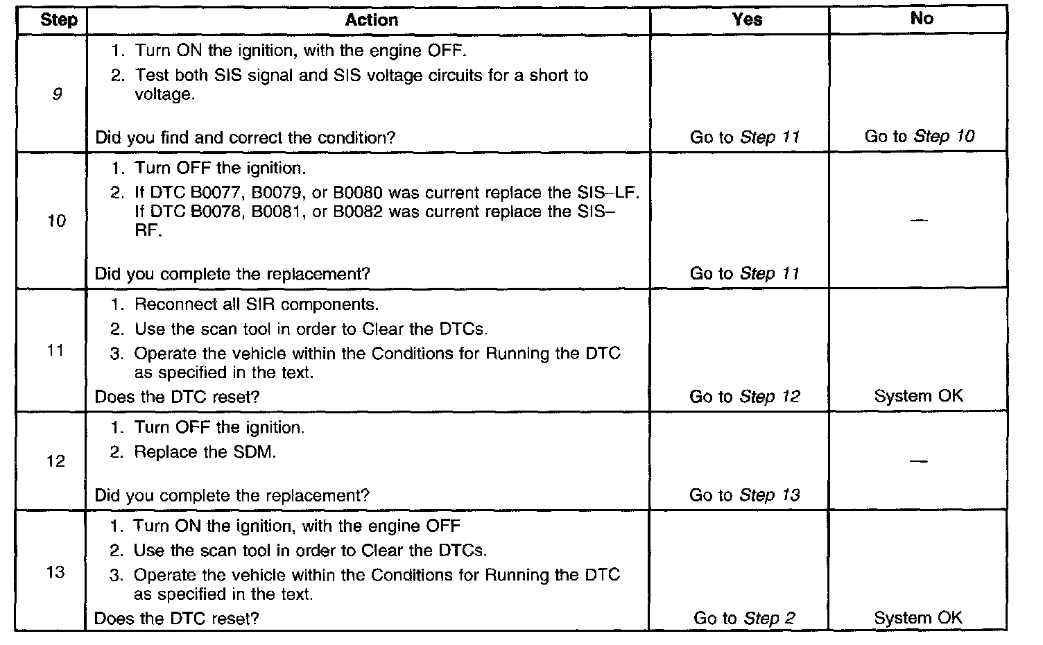 9. This step tests the SIS signal and SIS voltage circuits for a short to voltage.