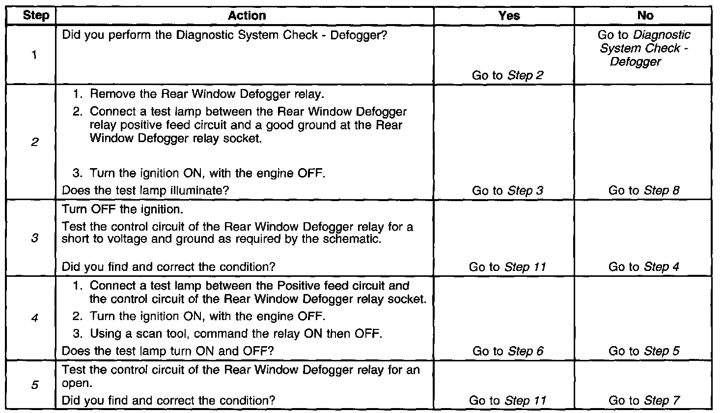 4. Listen for an audible click when the Rear Window Defogger relay operates. Command both the ON and OFF states. Repeat the commands as necessary.