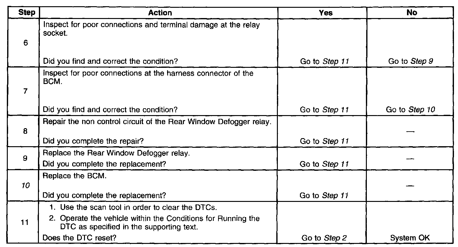 - The BCM detects that the Rear Window Defogger relay control circuit is open.