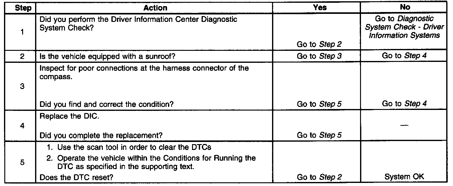 The DIC does not detect the compass sensor. This may be due to a faulty sensor or a remote sensor (sunroof only) that is not connected to the DIC.