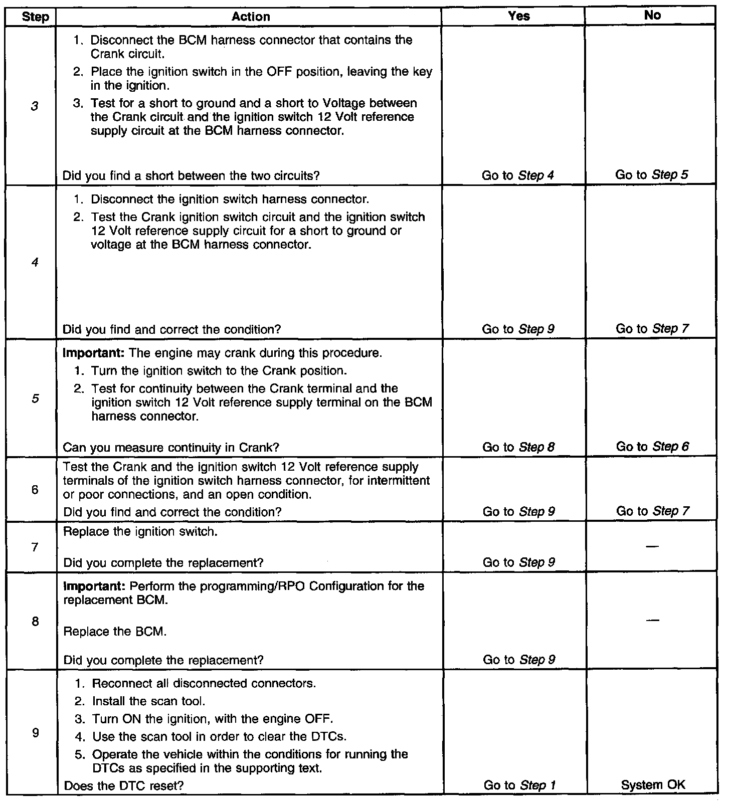 3. This tests the ignition switch for a short circuit between the 12 Volt reference supply circuit and the Crank circuit in the Off position.