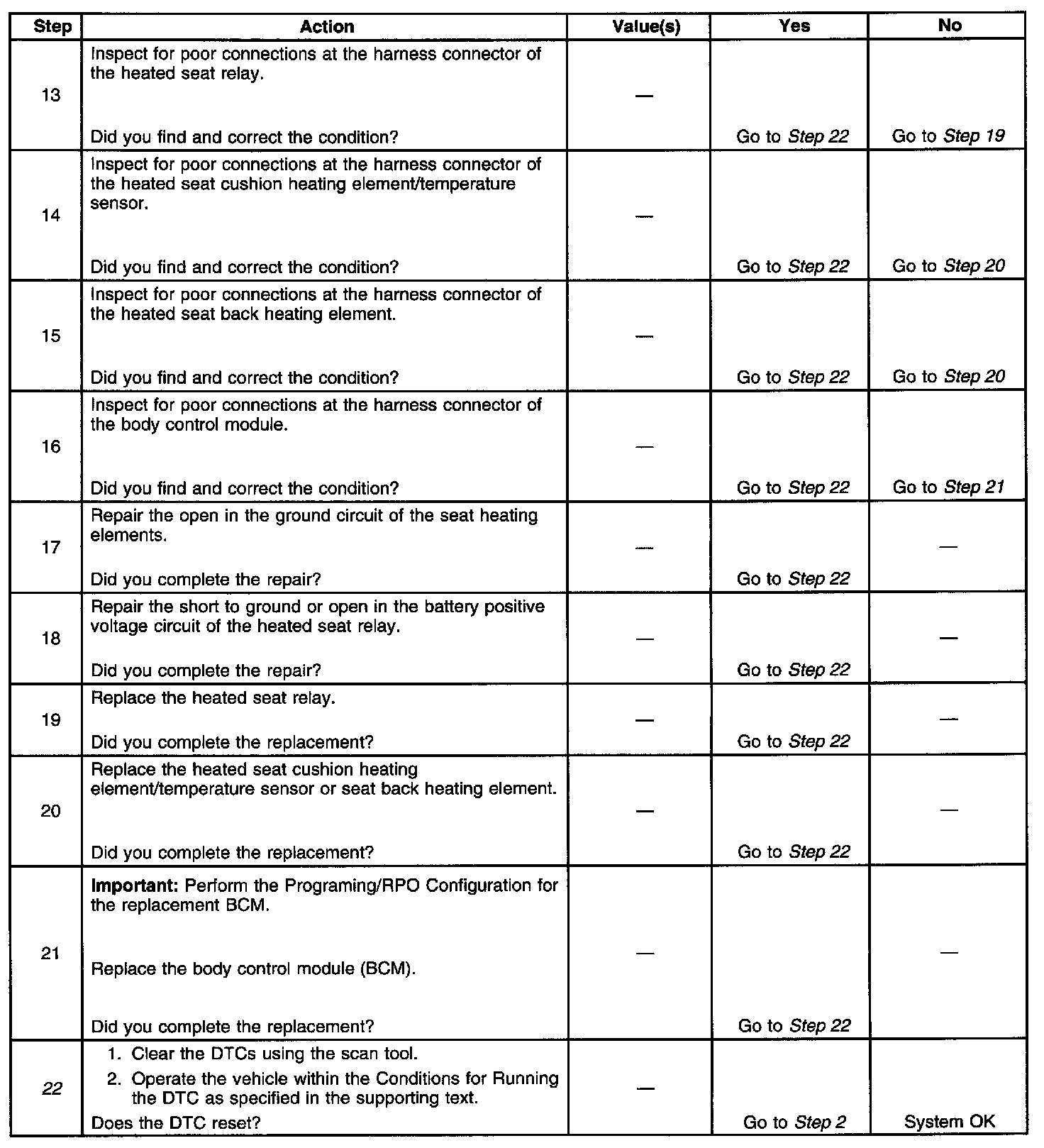 2. Faults in circuits of the heated seat system other than the temperature sensor may cause this DTC to set.