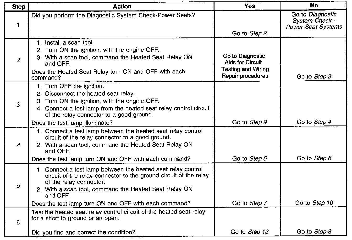 2. During the heated seat relay operation, listen for an audible click Command the ON and the OFF states Repeat the commands as necessary.