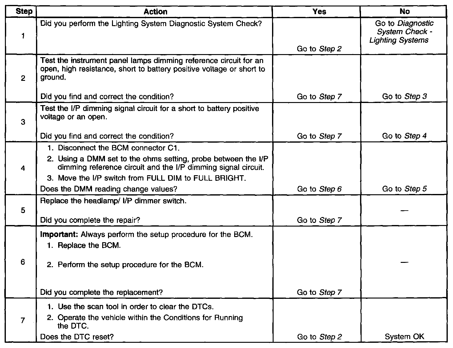 - When the BCM receives a instrument panel controls illumination lamp request signal and the instrument panel dimming reference circuit is shorted to ground, open or short to battery positive voltage.