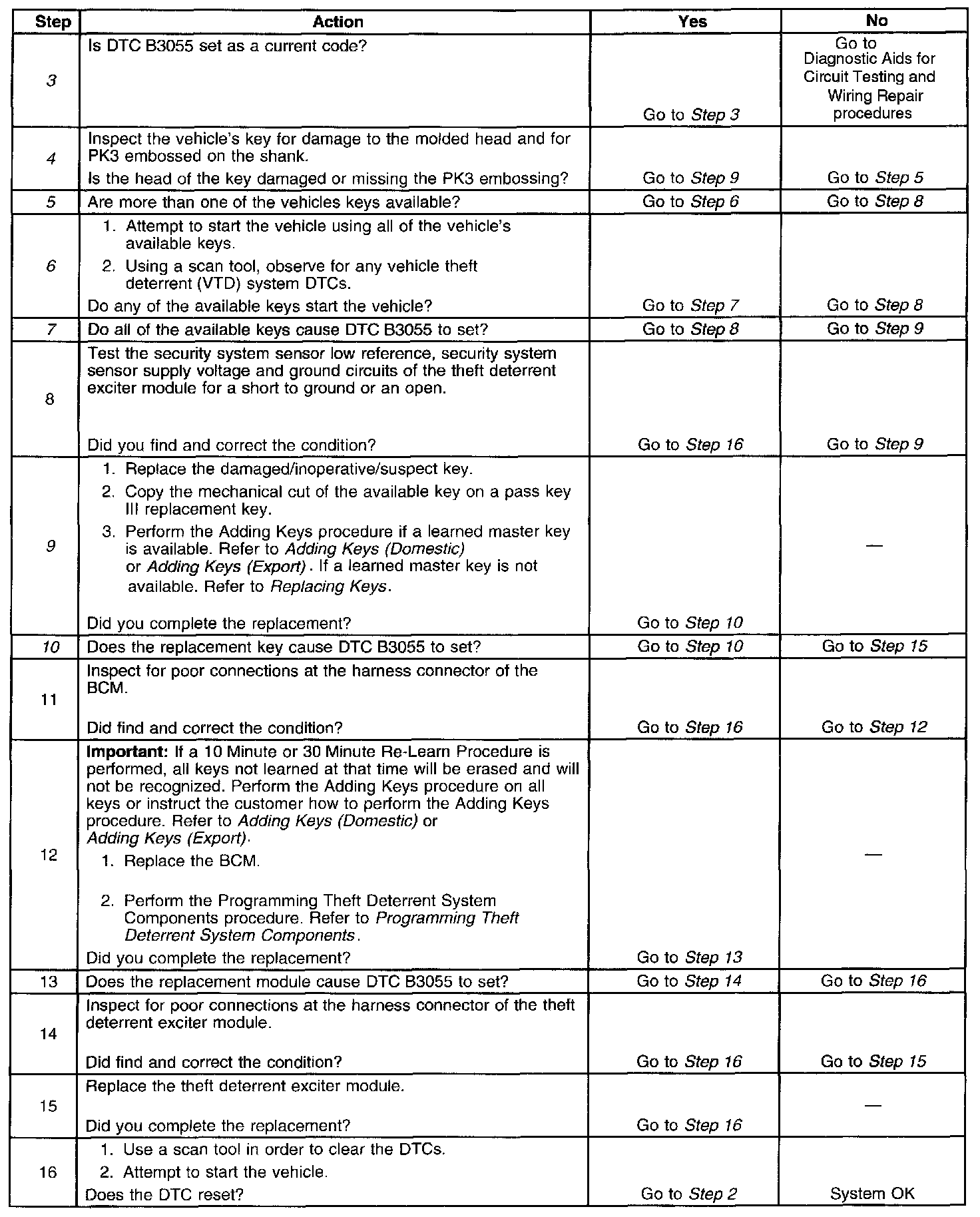 9. If a new key must be tried, the key must have the proper mechanical cut and the theft deterrent control module must "learn" the transponder value.