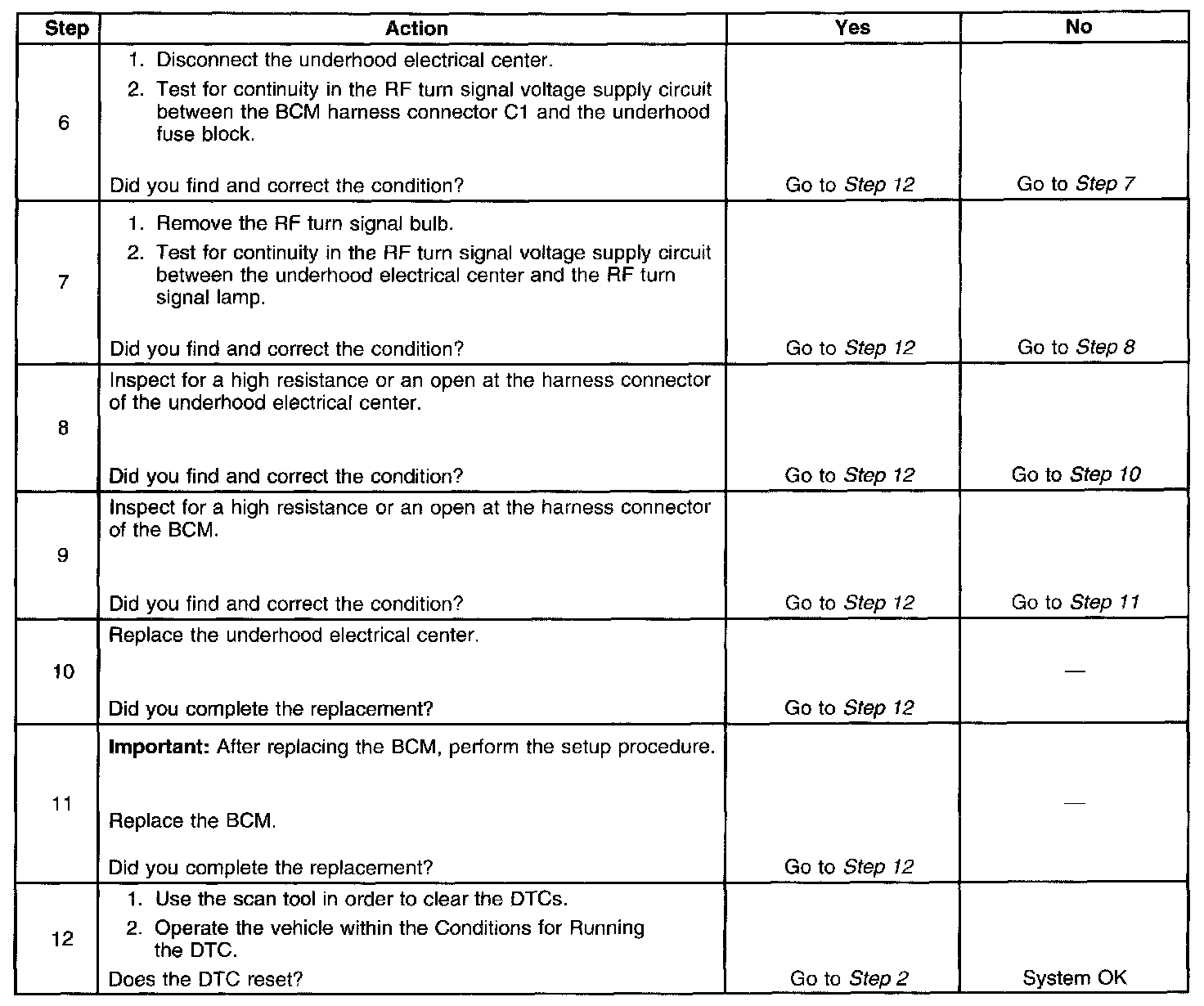- Check the RF turn lamp bulb. If the bulb is open, DTC B3948 will be set.