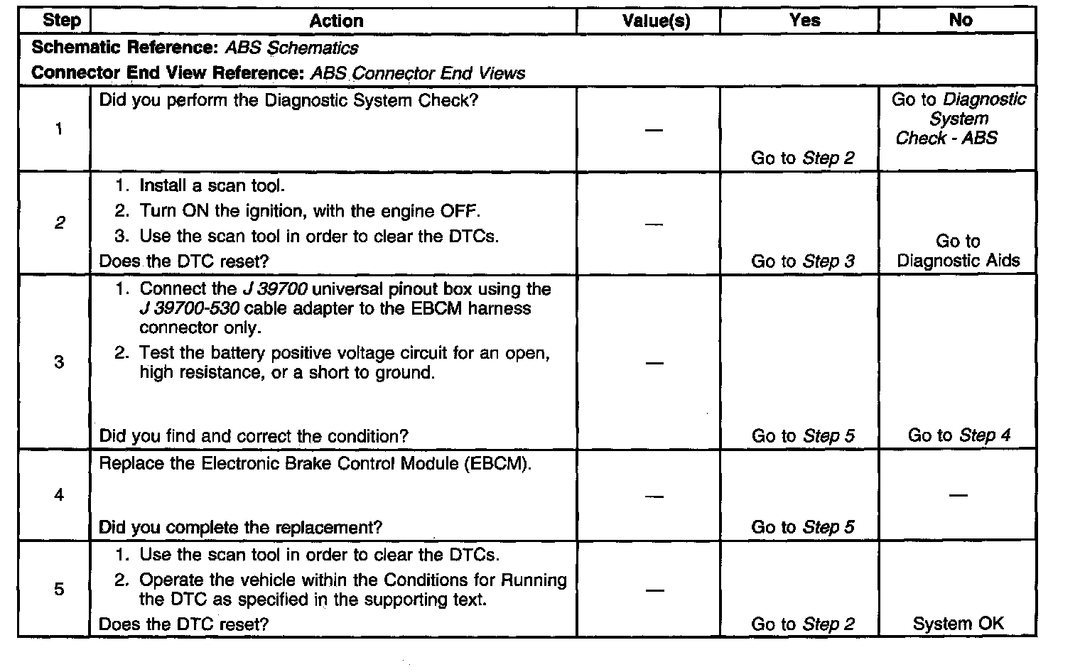 - DTC C0121 will set anytime the solenoid valve relay is commanded on and the EBCM does not see battery voltage at the solenoid valves.