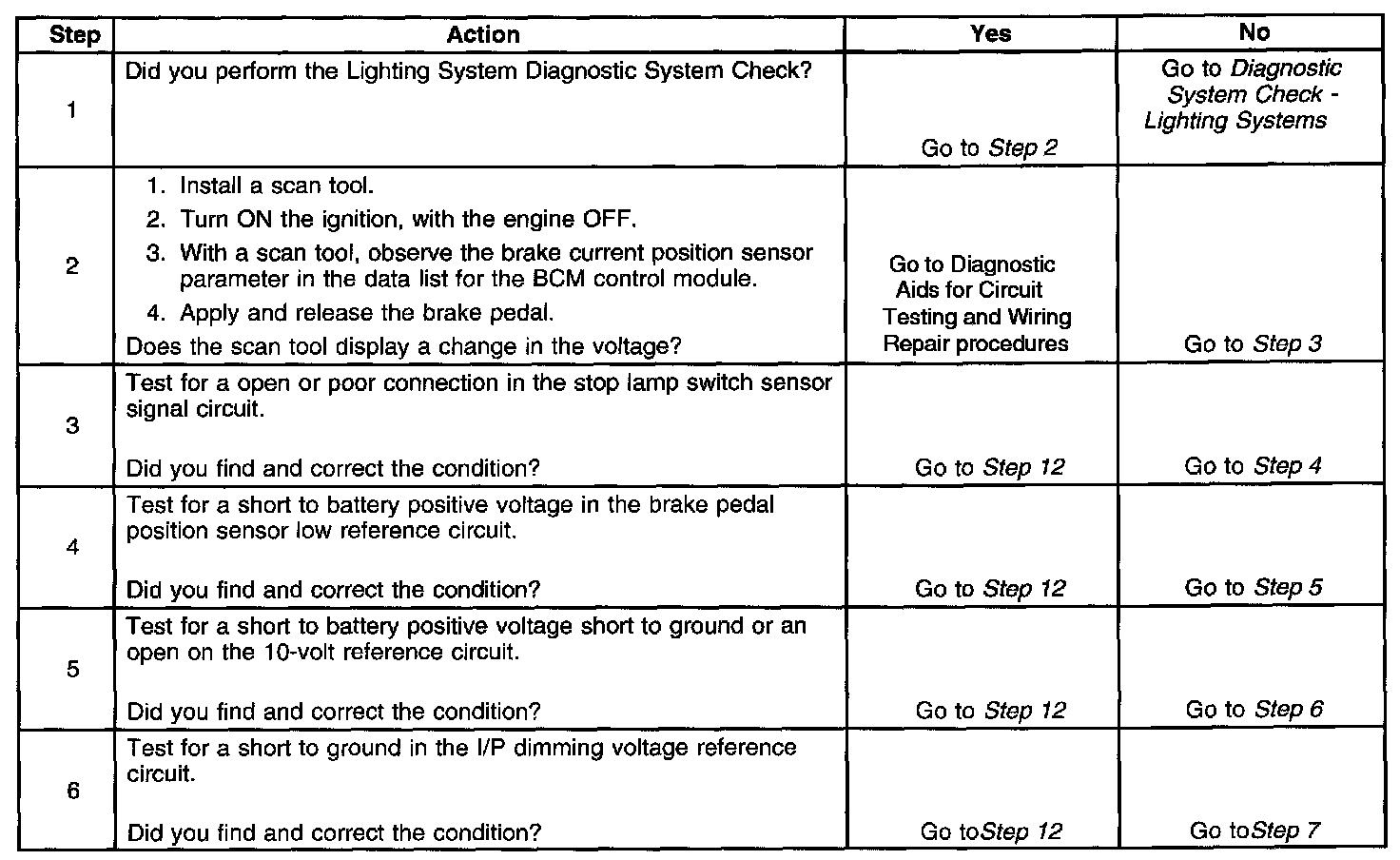 - A short to ground or an open in the stop lamp switch signal circuit is present.
