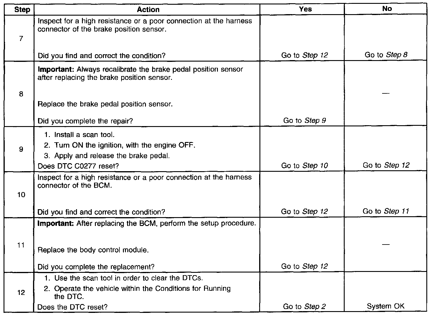 - A short to battery positive voltage or an open in the 10-volt reference circuit on the brake pedal position sensor.
