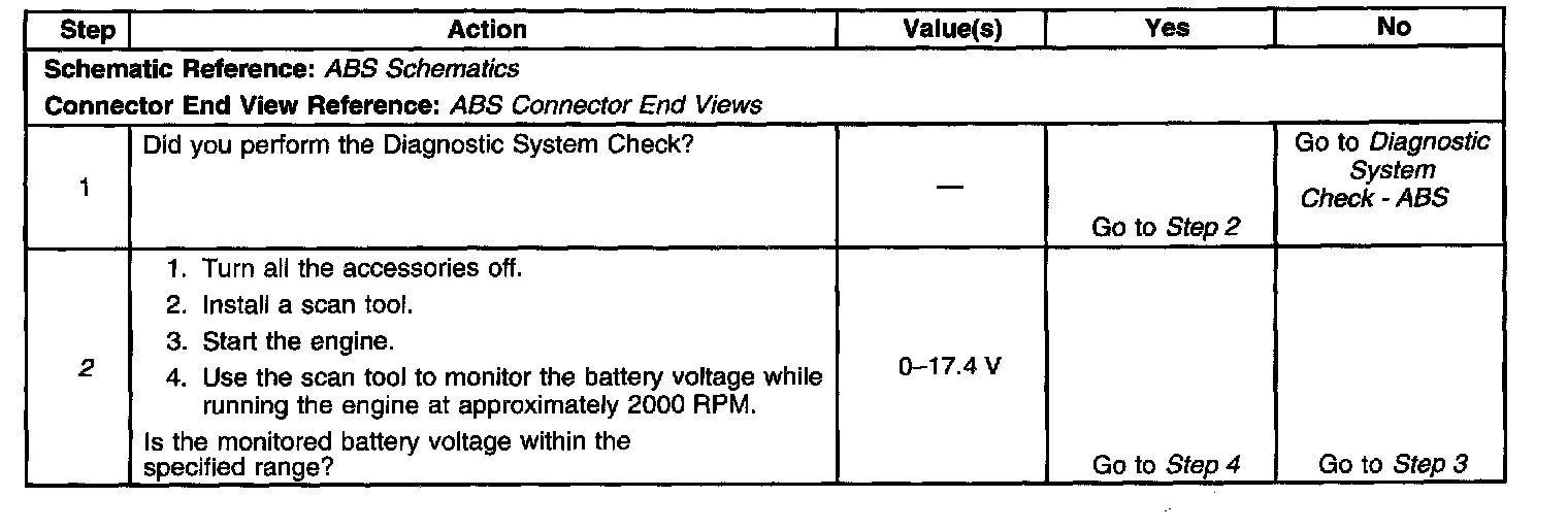 - The EBCM operating voltage at terminal 8 falls below 9.4 volts out of ABS/TCS control, or 8.8 volts during ABS/TCS control.