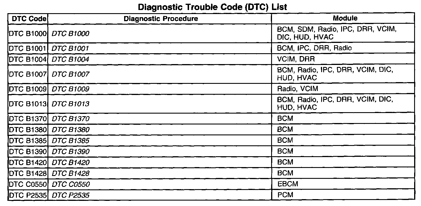 DTCs B1000 - P2535: