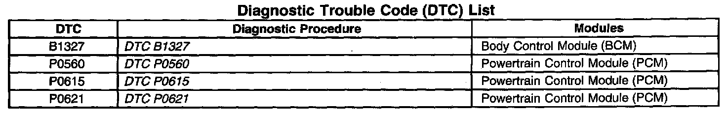 DTCs B1327-P0621: