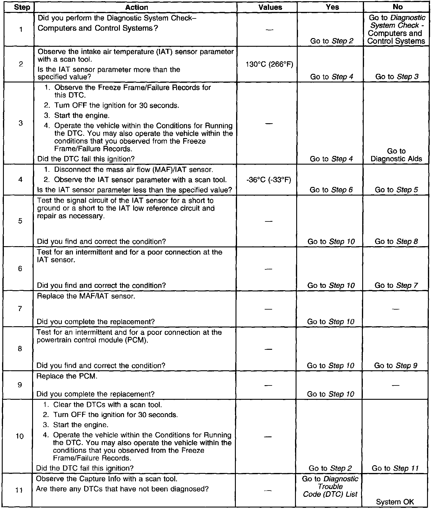 - If an intermittent condition is suspected, refer to Intermittent Conditions. Diagnostic Strategies