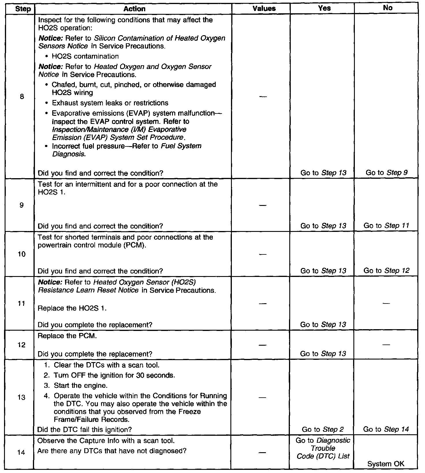 - A current DTC, Last Test Failed, clears when the diagnostic runs and passes.
