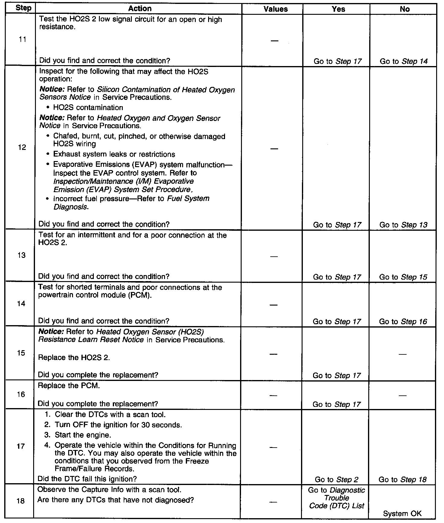 - A current DTC, Last Test Failed, clears when the diagnostic runs and passes.