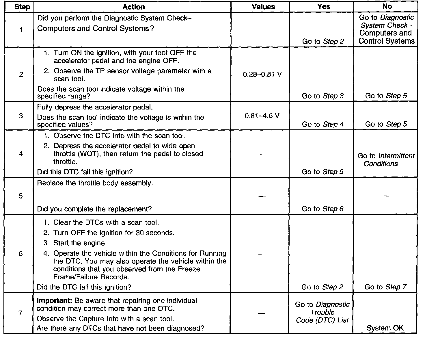 The PCM learns a minimum throttle position of more than 0.813 volts.