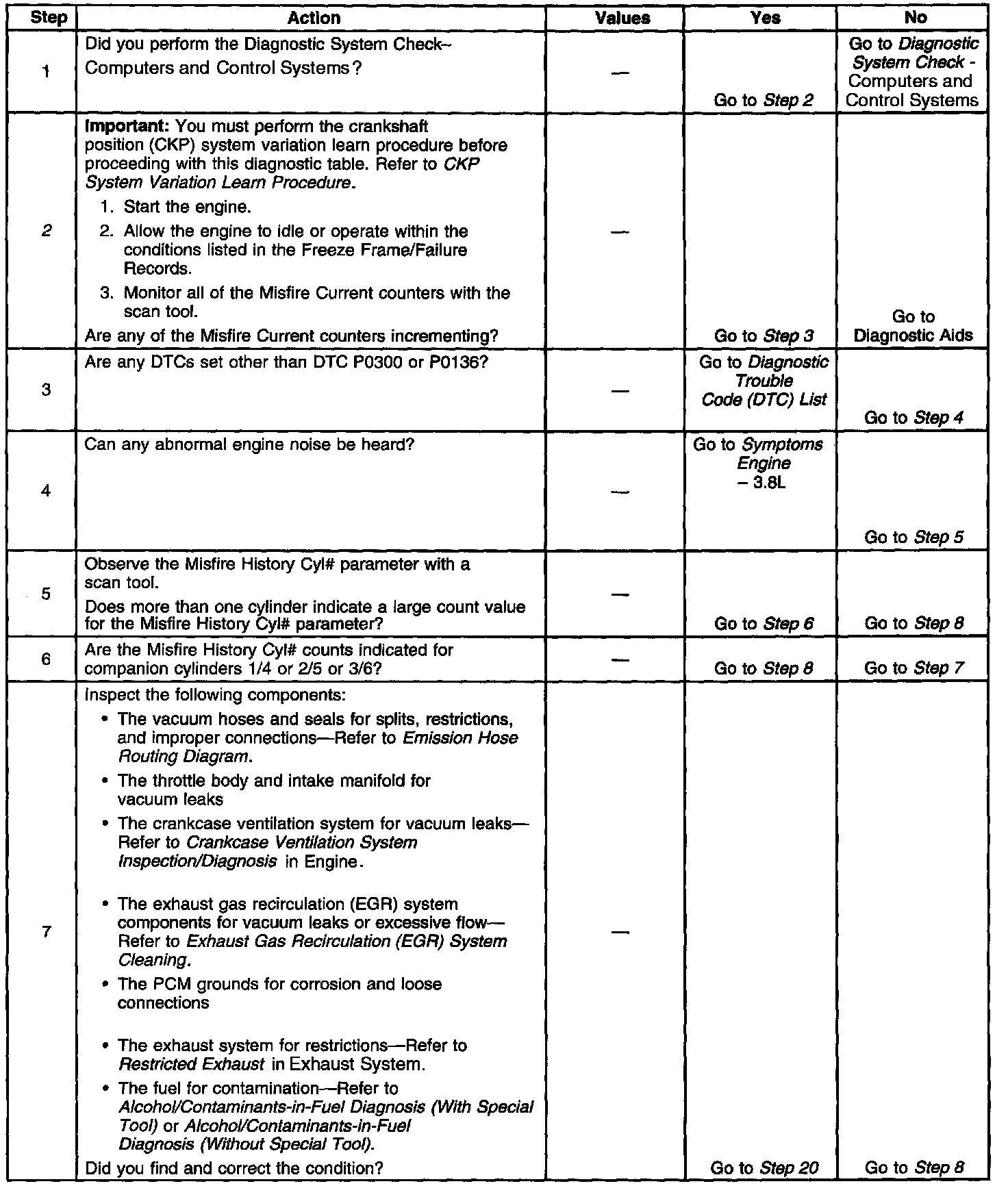 2. If the actual crankshaft position (CKP) variation values are not within the learned values, the misfire counters may increment.