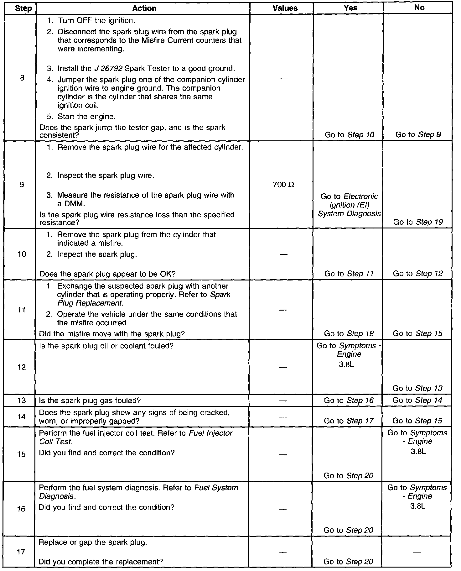 The number below refers to the step number on the diagnostic table.