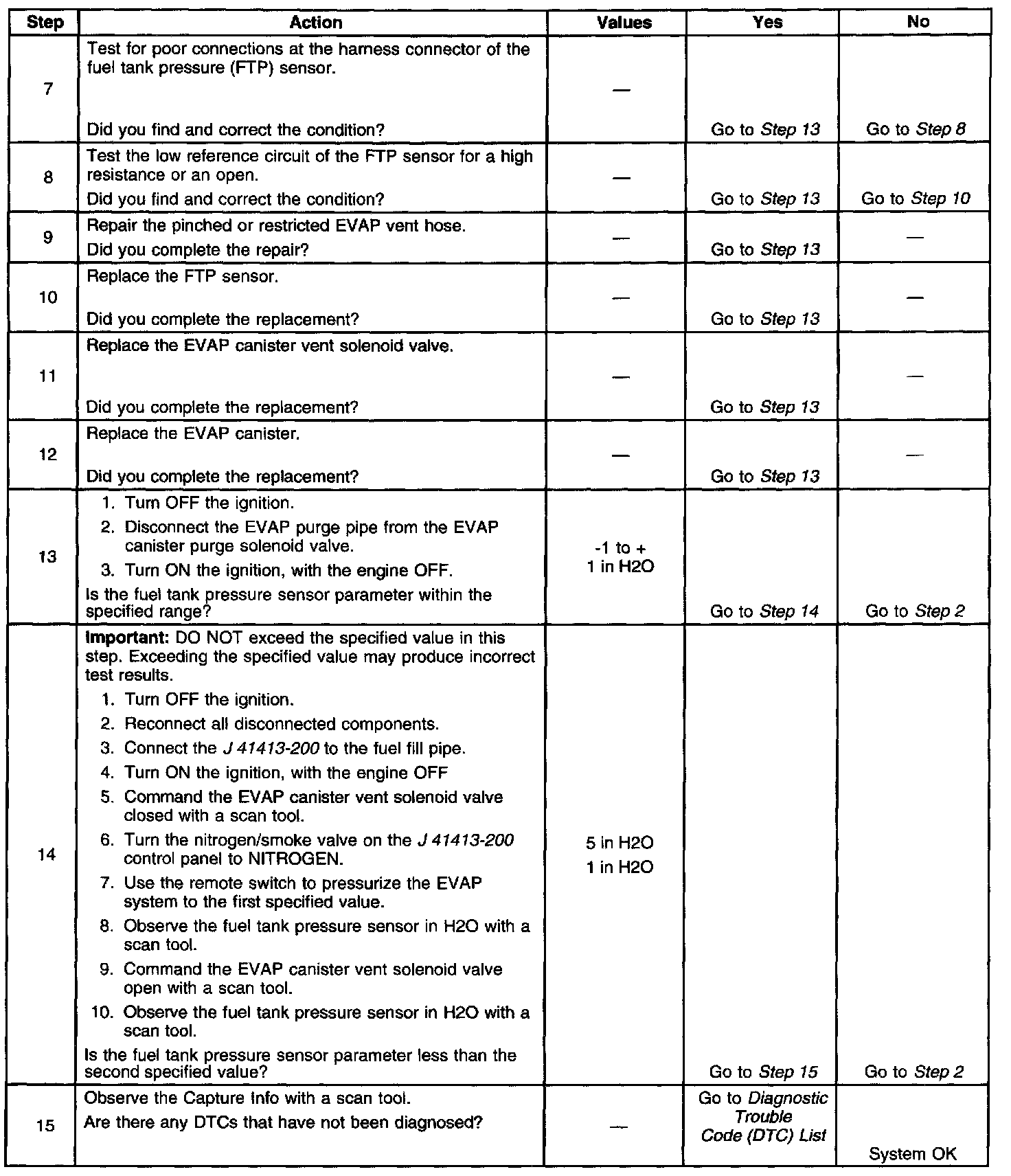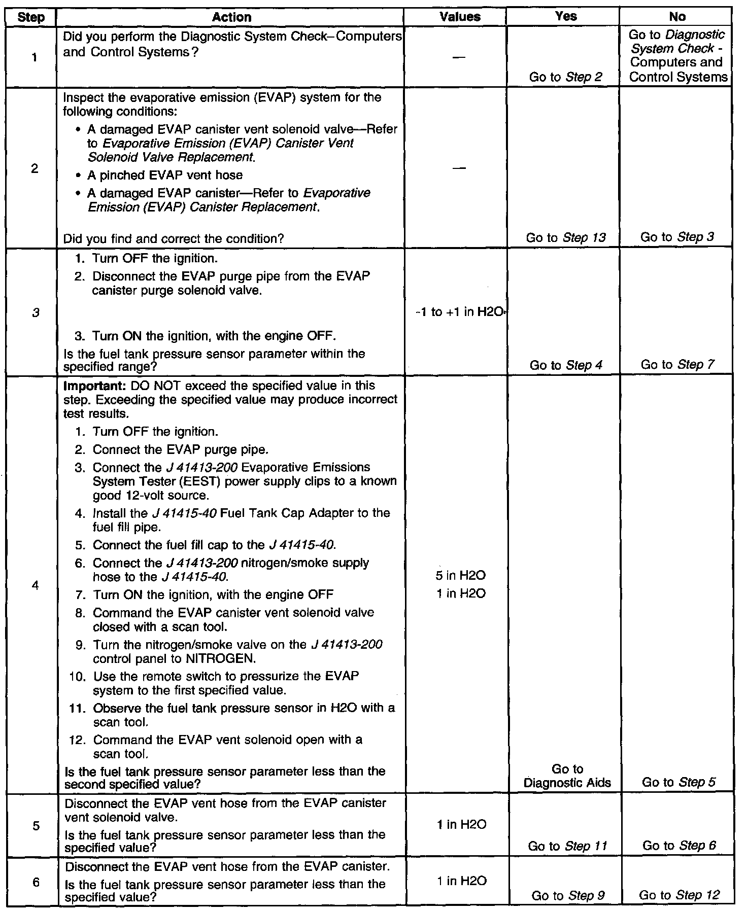 - The fuel tank pressure is less than -10 inches H2O.