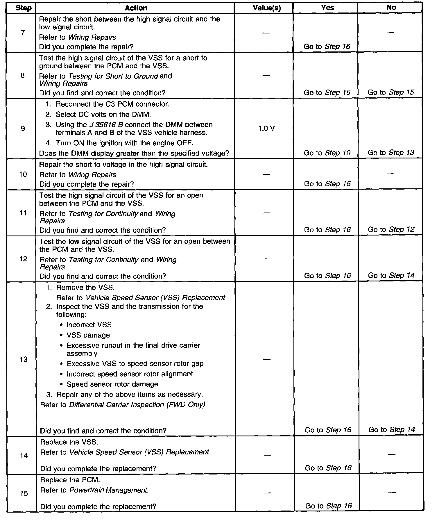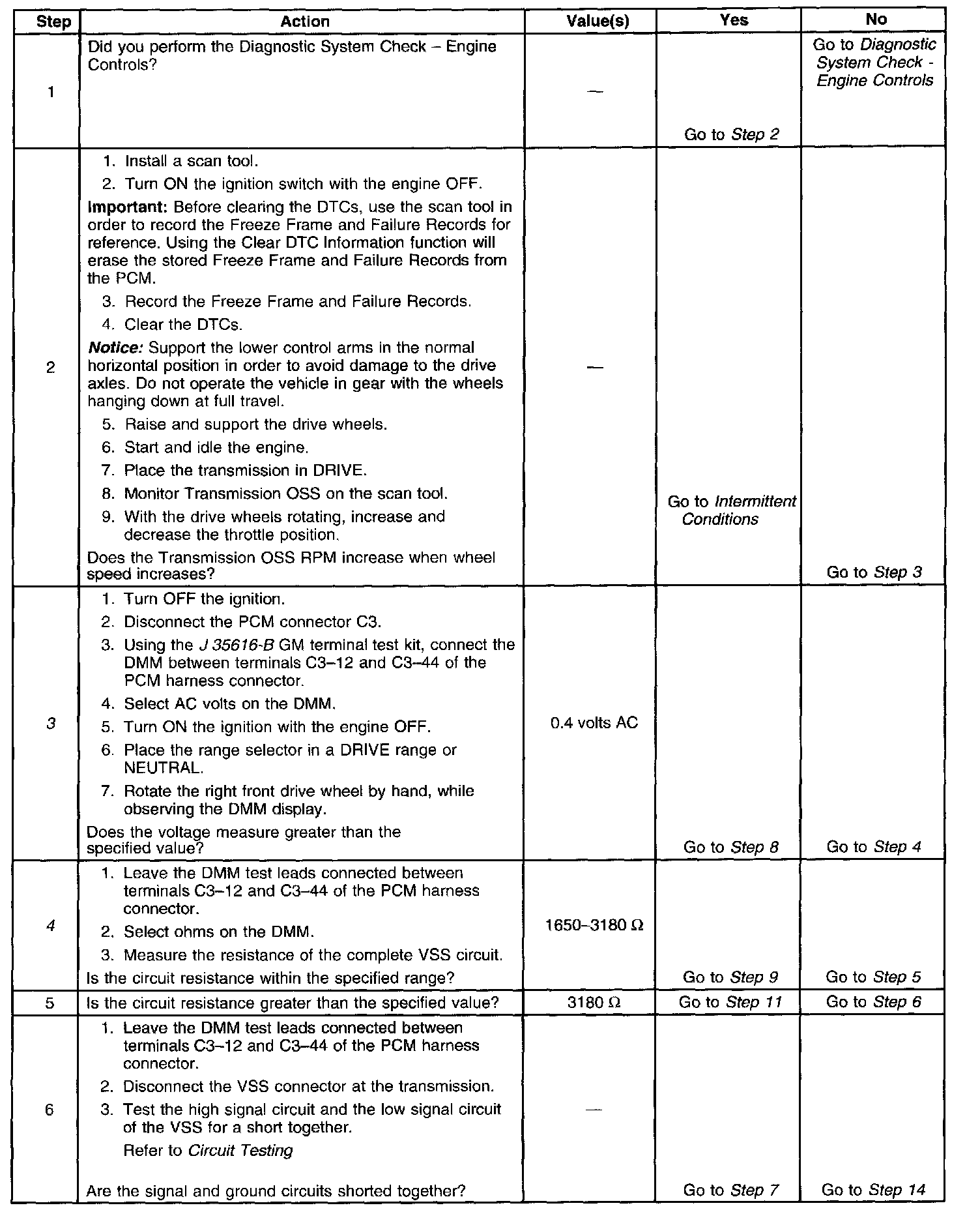 3. This step tests the ability of the VSS to produce an AC voltage. This step also verifies the integrity of the wiring to the PCM.