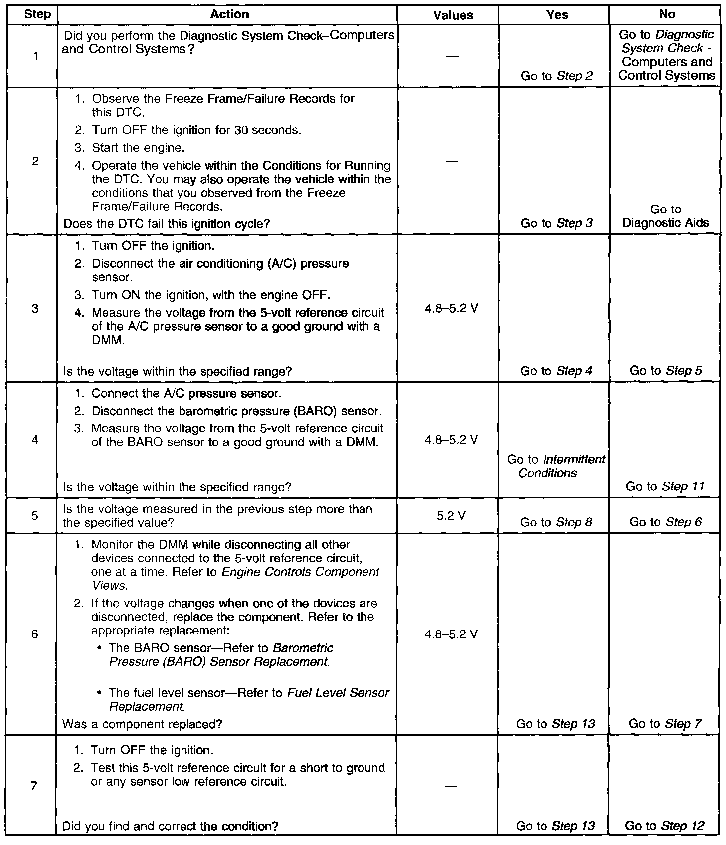 - The PCM detects a voltage out of tolerance condition on the 5-volt reference circuit.