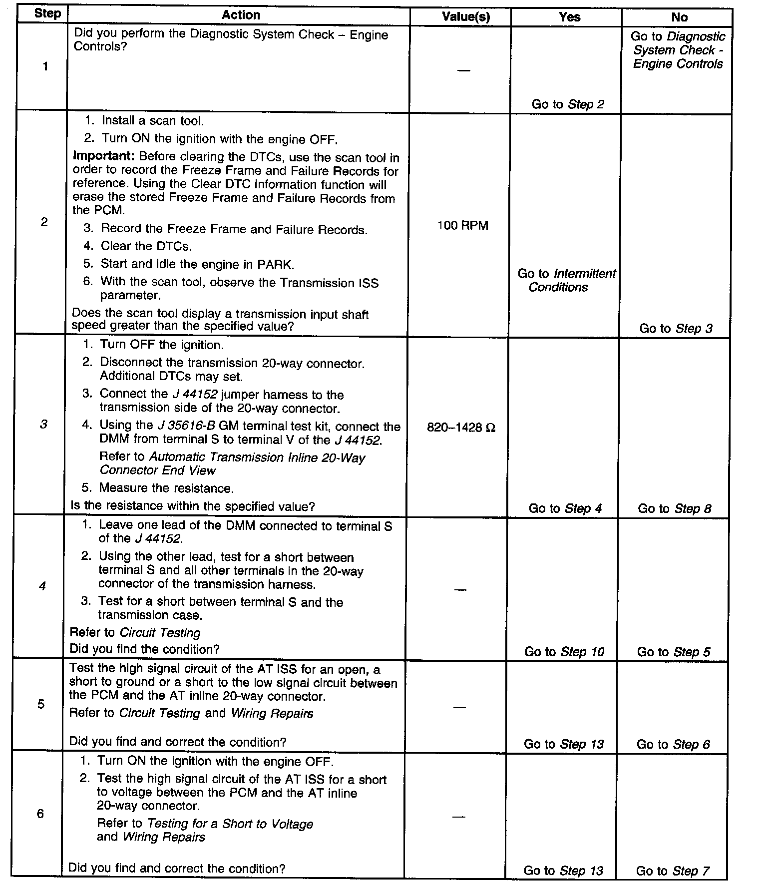 DTC P0716 Steps 1 - 6:
