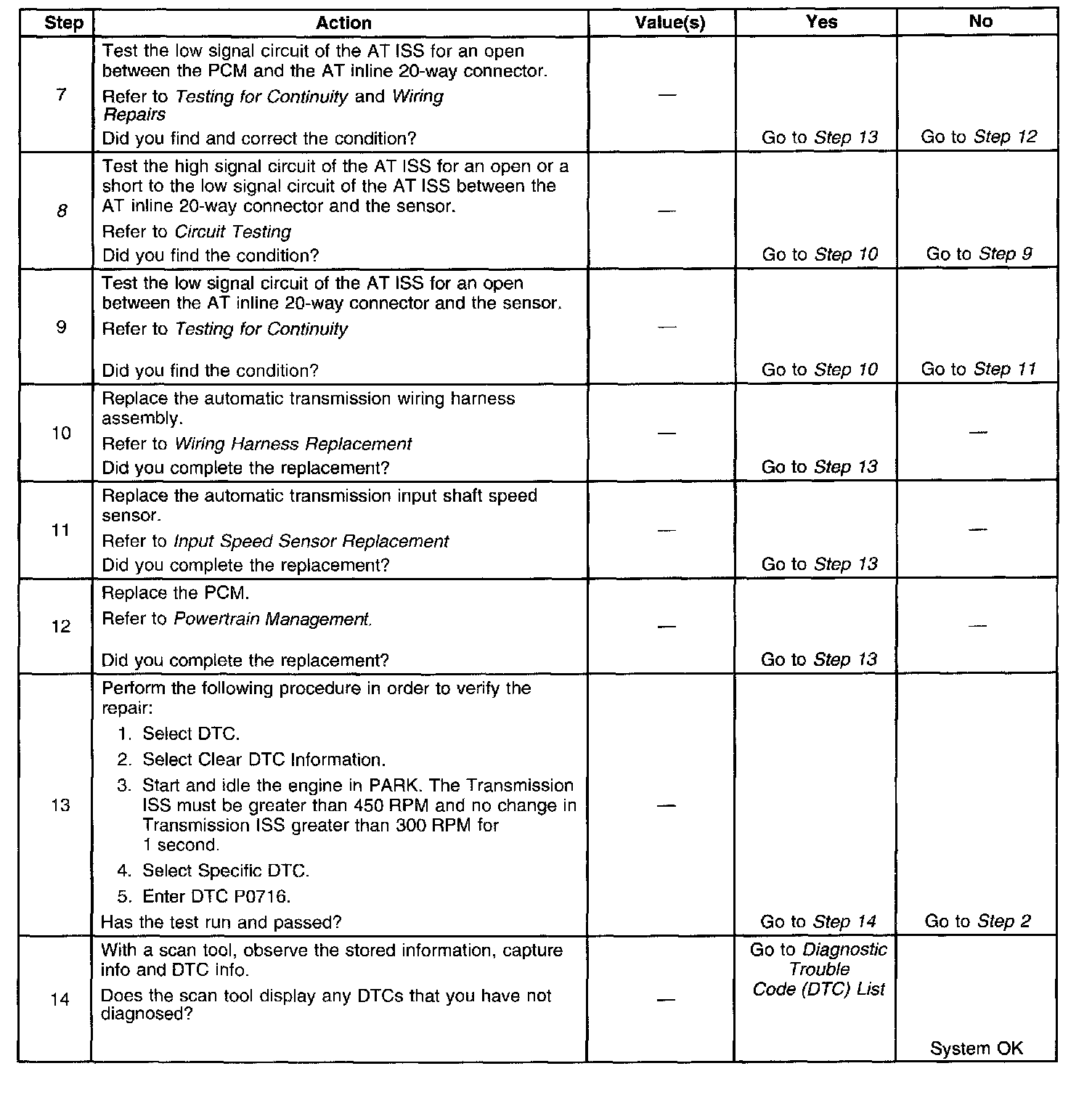 DTC P0716 Steps 7 - 14: