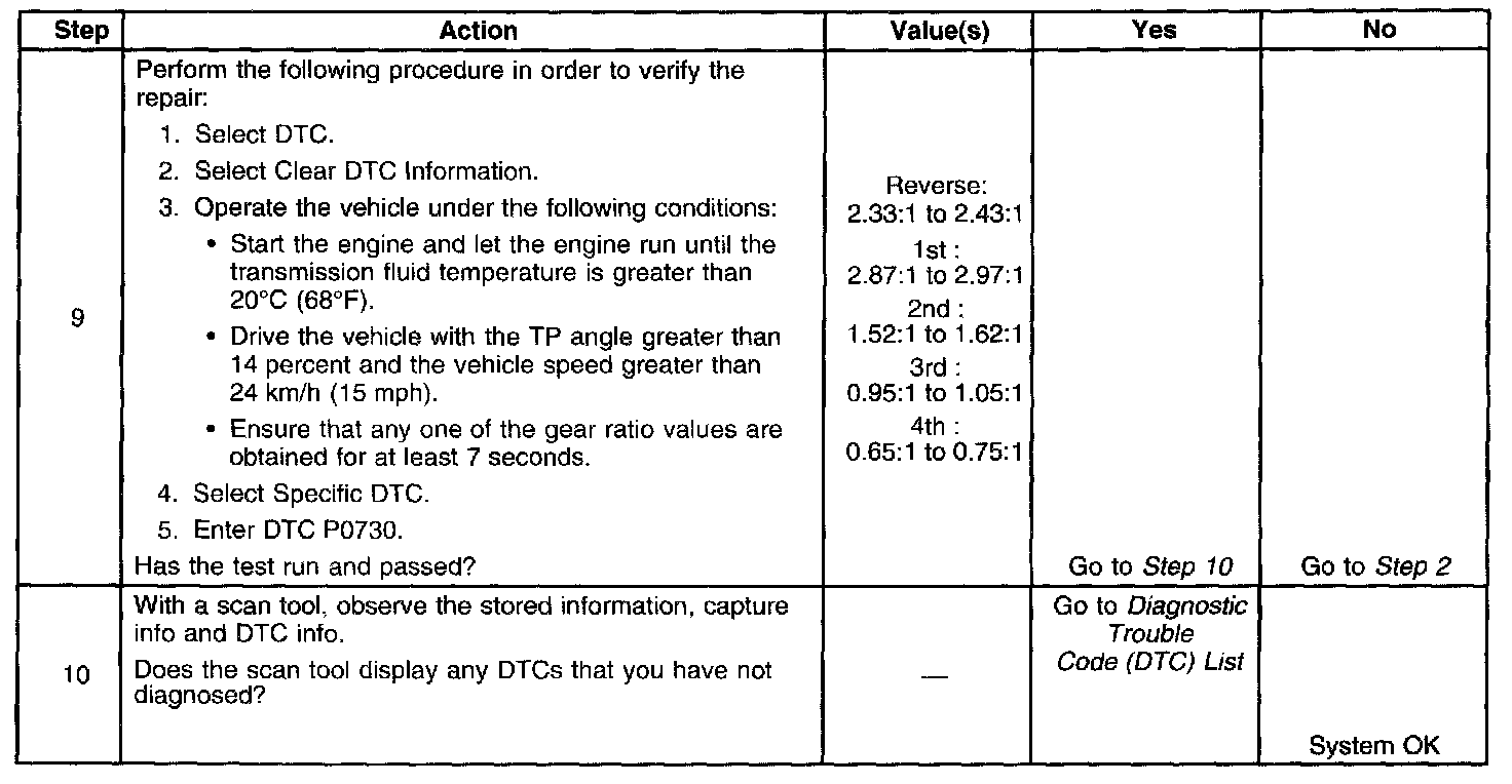 DTC P0730 Steps 9 - 10: