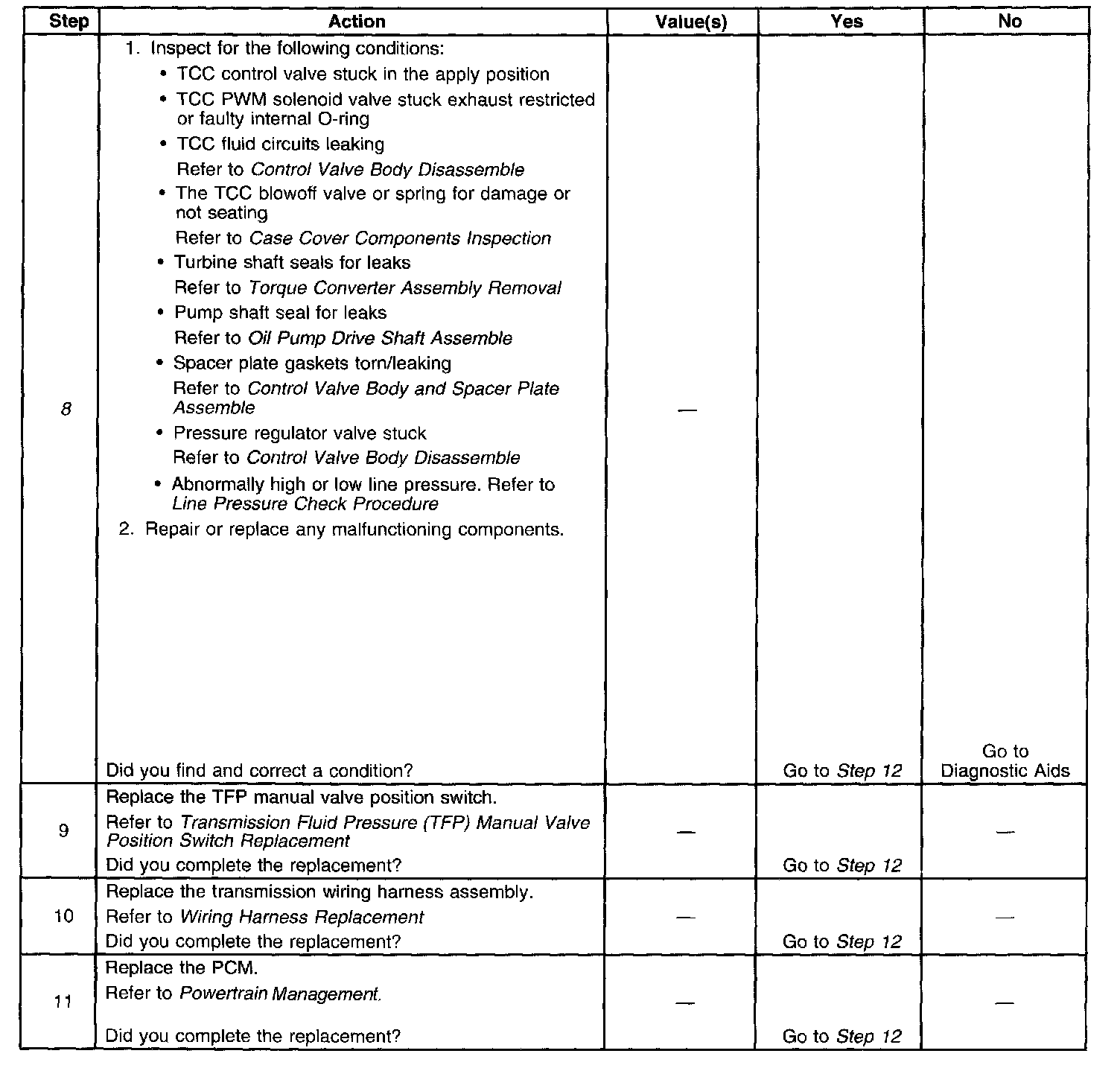 8. This step tests for a mechanical or hydraulic condition that would cause the TCC to be stuck ON.